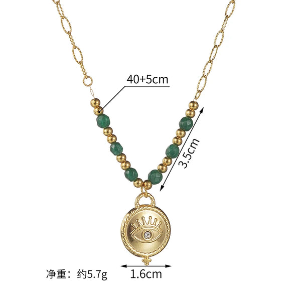 Le collier est fabriqué en acier inoxydable et perles de pierre naturelle, garantissant durabilité et style.